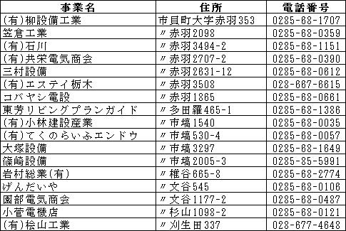 | 大塚設備 | 市塙3297 | 0285-68-1649 |